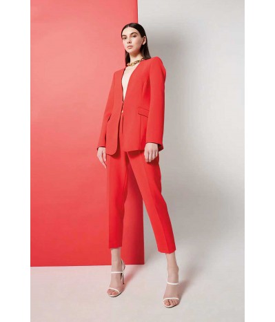 Pantalone Nenette vita alta con doppio bottone, realizzato in crepe modello cigarette con tasche oblique