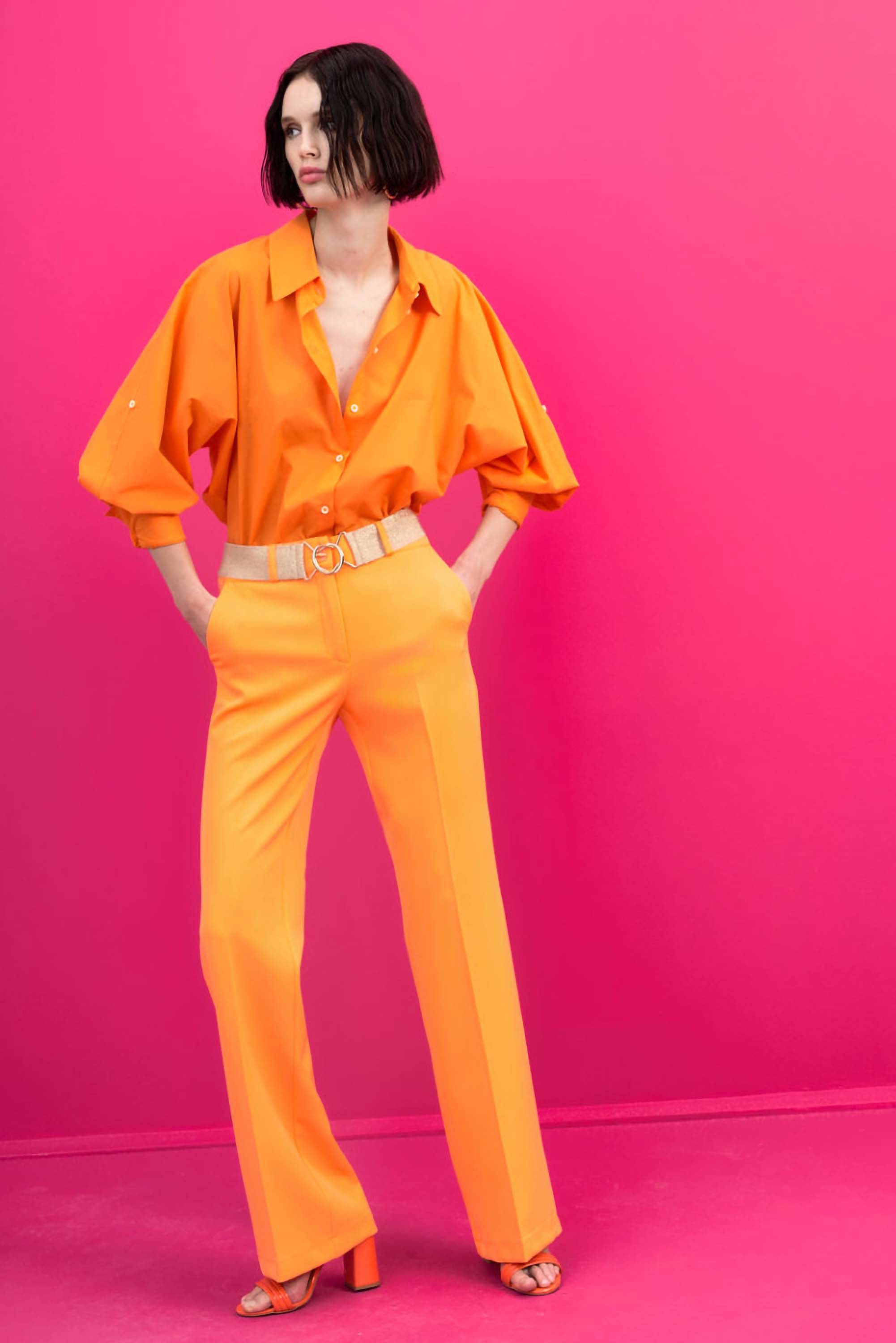 Pantalone straight Access con vita alta e tasca a filo, realizzato con tessuto ecosostenibile