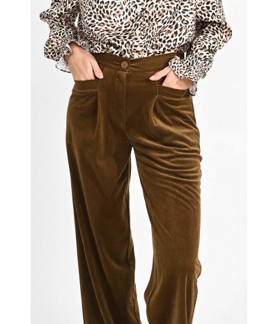 Eleva il tuo stile con il pantalone Molly Bracken. Questo capo unico unisce il comfort del velluto alla sofisticatezza delle mille righe, creando un look versatile e di tendenza.La vita elasticizzata assicura una vestibilità comoda e aderente, adattandosi alla tua silhouette in modo elegante. Le tasche laterali aggiungono un tocco pratico e funzionale, perfetto per chi cerca stile senza rinunciare alla comodità.Il velluto mille righe conferisce al pantalone una texture ricca e unica, rendendolo ideale per creare outfit sia casual che più raffinati. Indossalo con una camicia o una maglia per un look da giorno alla moda, o abbinalo a un top elegante per un'occasione più formale.