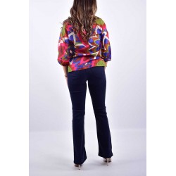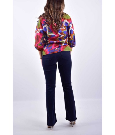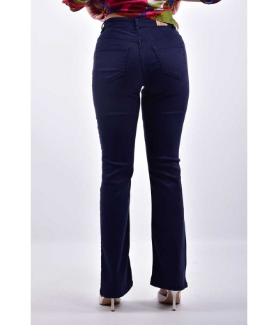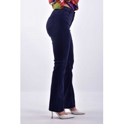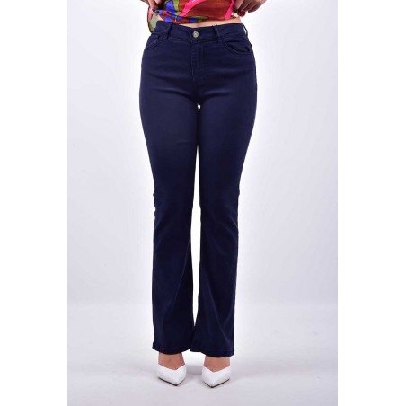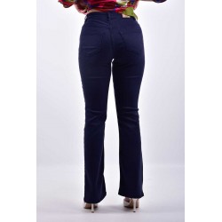Pantalone Emme Marella a cinque tasche, realizzato in tessuto stretch per una vestibilità confortevole e aderente. Il modello a zampa offre un tocco vintage e slancia la figura, rendendolo perfetto per un look casual chic. Ideale da abbinare a top o bluse, questo pantalone unisce praticità e stile, adatto a diverse occasioni, sia informali che più eleganti.