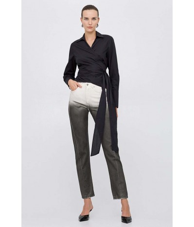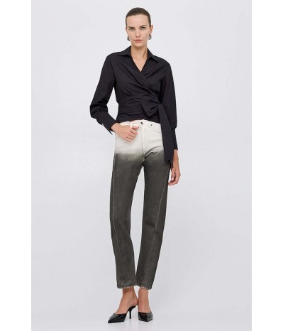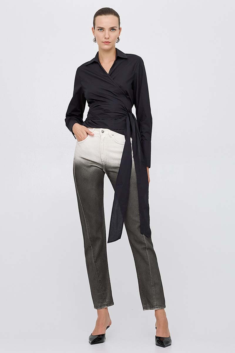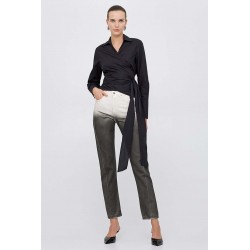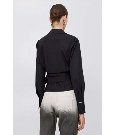 Camicia Access, un capo che unisce eleganza e originalità. Questa camicia presenta un raffinato scollo a V e un colletto classico, creando un look sofisticato e moderno.La chiusura a portafoglio aggiunge un tocco unico e funzionale, mentre le maniche lunghe sono impreziosite da bottoni particolari e logati, che conferiscono un dettaglio distintivo e di alta qualità.