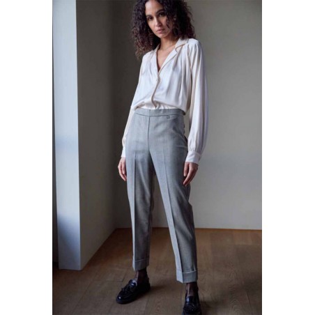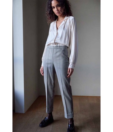 Pantalone Zanetti dal design moderno e confortevole, caratterizzato da una pratica chiusura a zip laterale che dona un look pulito ed essenziale. Il modello sigaretta affina la silhouette, mentre il risvolto sul fondo aggiunge un tocco contemporaneo e chic. La cintura elastica in vita garantisce una vestibilità comoda e aderente, adattandosi facilmente alla forma del corpo. Con una vestibilità regular fit, questo pantalone è ideale per chi cerca un capo versatile e stiloso. Made in Italy.