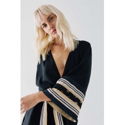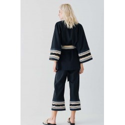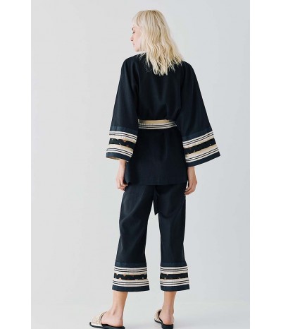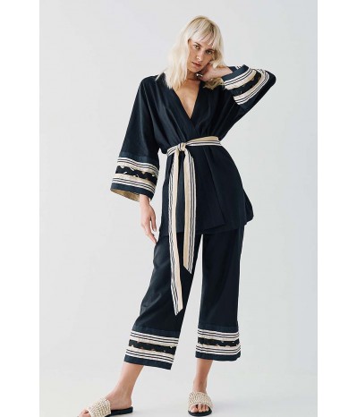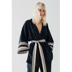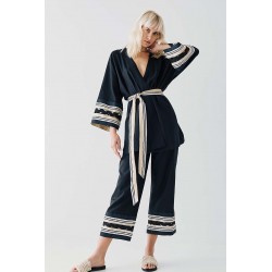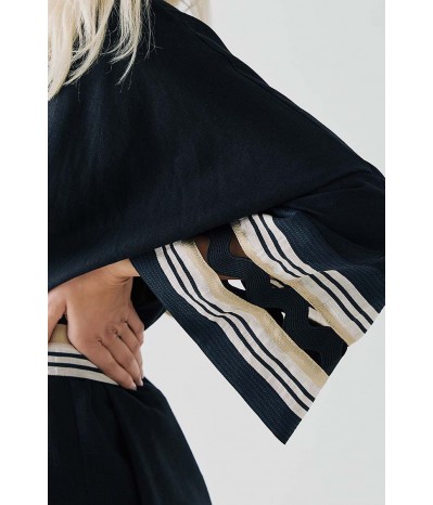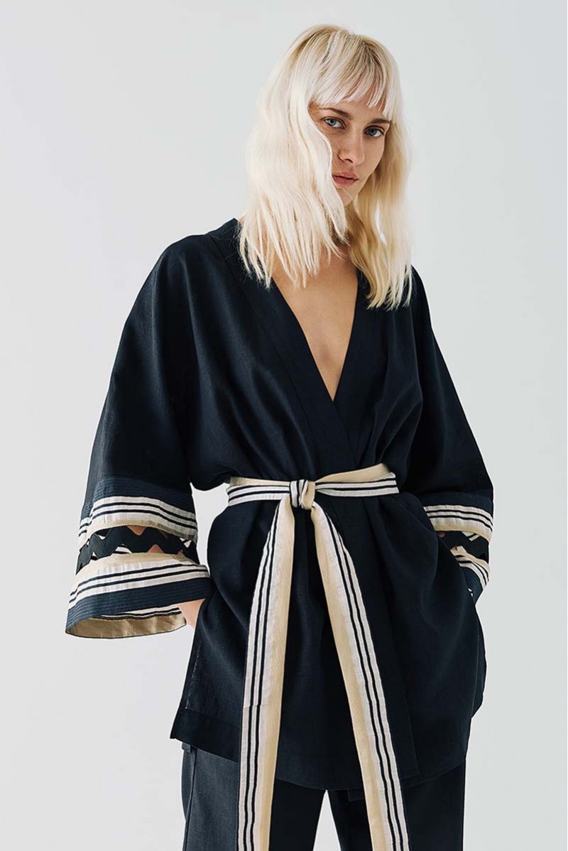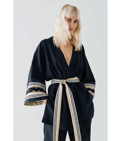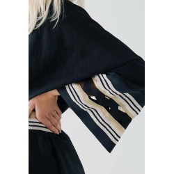 Giacca Access in misto lino, un capo raffinato e dal design sofisticato, perfetto per un look elegante e contemporaneo. La cintura in vita valorizza la silhouette, donando un tocco femminile e strutturato, mentre le maniche con decoro in contrasto di colore aggiungono originalità e carattere al modello. Il perfilo lurex regala una luminosità discreta, impreziosendo il design con dettagli raffinati.