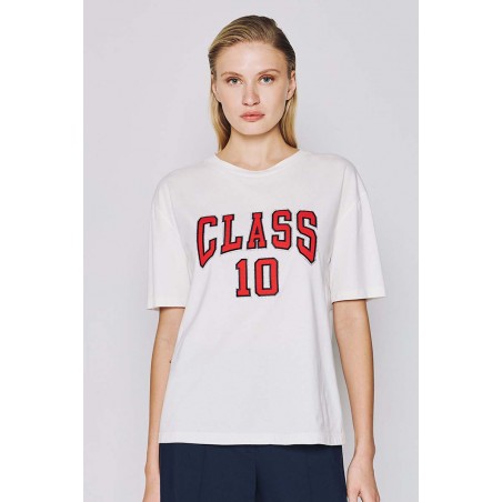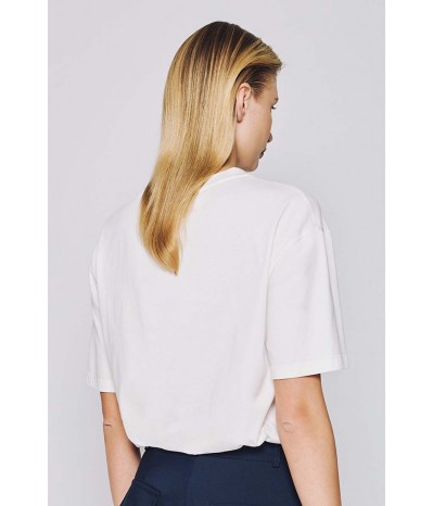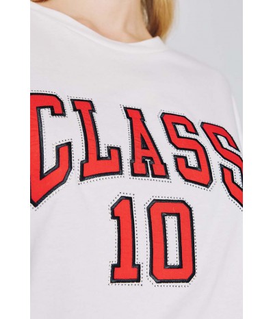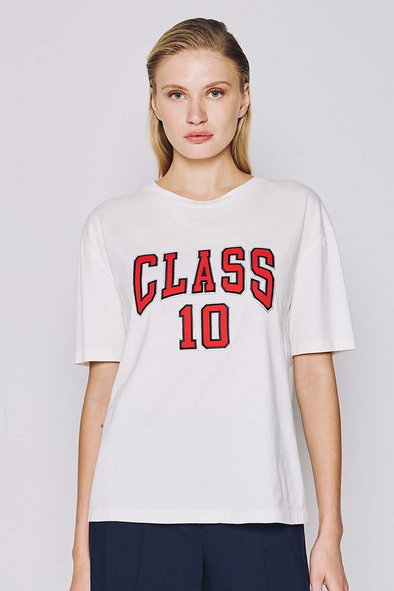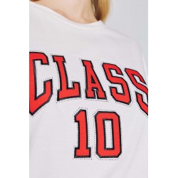 Maglia Over Spell in cotone, un capo dallo stile contemporaneo e glamour. La vestibilità oversize offre un look rilassato e alla moda, perfetto per outfit casual-chic. Il dettaglio distintivo è la scritta decorata da strass, che dona un tocco di luminosità ed eleganza al design minimal. Realizzata in cotone di alta qualità, garantisce comfort e traspirabilità, ideale per ogni stagione.