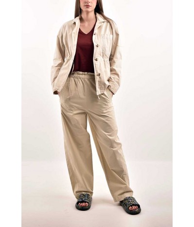 Pantalone Woolrich, un capo pratico e sofisticato perfetto per un look casual ma curato. Realizzato in cotone leggero, offre comfort, traspirabilità e morbidezza, ideale per l’uso quotidiano.Il design presenta una vita alta con coulisse, che assicura una vestibilità regolabile e valorizza la silhouette in modo naturale. Le tasche a filo sul davanti aggiungono funzionalità con discrezione, mentre la tasca applicata sul retro dona un tocco utility moderno e originale.