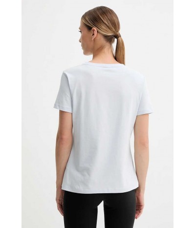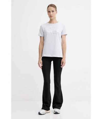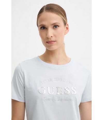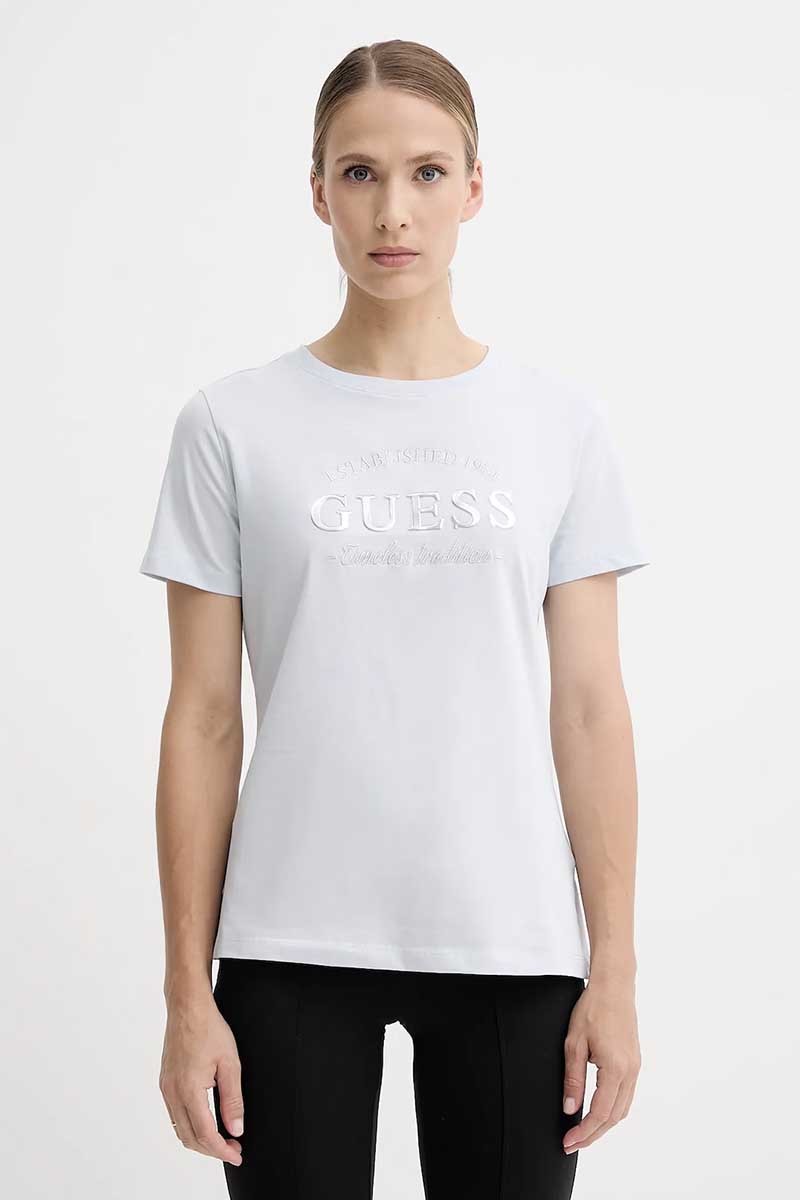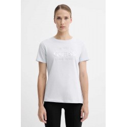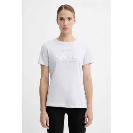 T-shirt Guess a manica corta dal design essenziale e contemporaneo, realizzata in morbido cotone di qualità, che assicura comfort e traspirabilità durante tutta la giornata. Il modello presenta un classico girocollo a costine, che ne esalta la linea casual e versatile.Elemento distintivo del capo è il logo gommato con finitura metallizzata, dettaglio che aggiunge un tocco moderno e ricercato, valorizzando l’identità del brand.