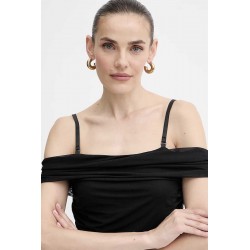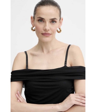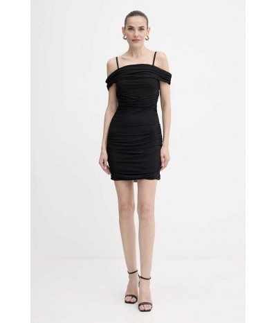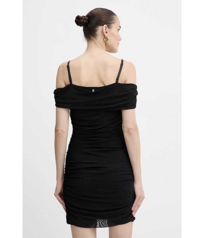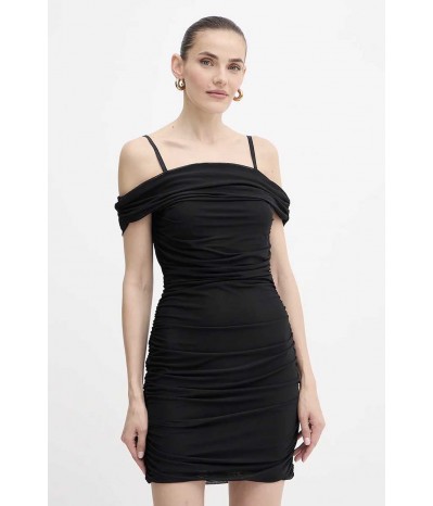 Abito corto Guess realizzato in tulle leggero ed elasticizzato, dal design sensuale e femminile. Il modello è caratterizzato da sottili bretelline e da una fascia che avvolge le spalle, creando un gioco di trasparenze e linee eleganti.L’arricciatura sui fianchi valorizza la silhouette e slancia la figura, aggiungendo un dettaglio raffinato e contemporaneo.
