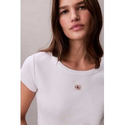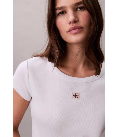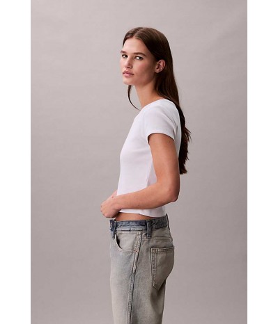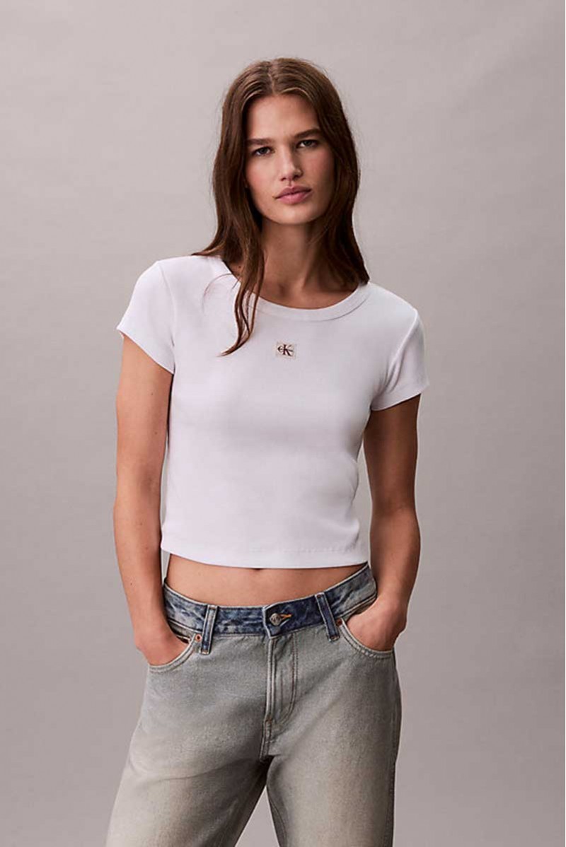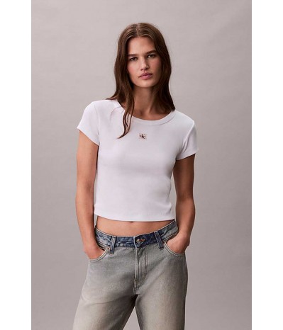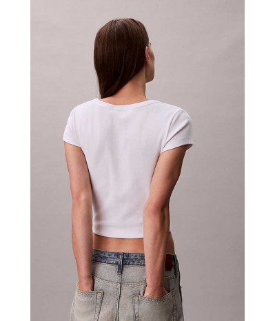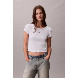 T-shirt Calvin Klein Jeans dal taglio crop, realizzata in morbido cotone a costine, che avvolge la silhouette con comfort ed elasticità. Il modello presenta un design minimal con logo centrale a contrasto, dettaglio iconico che valorizza lo stile essenziale e contemporaneo del brand.Un capo giovane e versatile, perfetto da abbinare a denim a vita alta, gonne o pantaloni wide leg per creare look casual e di tendenza.