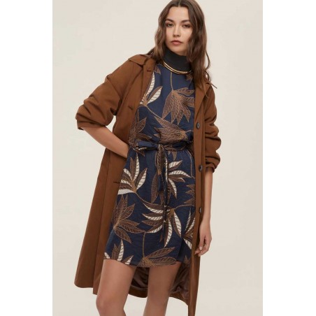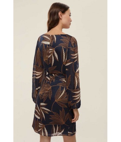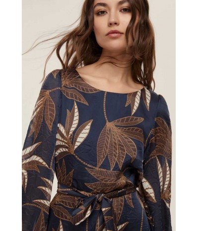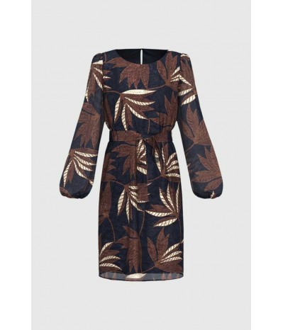 Abito Emme Marella dal fascino raffinato e fluido, realizzato in raso tecnico leggero con fodera interna per garantire comfort e una perfetta vestibilità. Il fit dritto valorizza la silhouette con eleganza, mentre lo scollo stondato con goccia e bottone posteriori aggiunge un dettaglio delicato e femminile.Le maniche lunghe con polso arricciato donano volume e movimento, mentre la cintura in tessuto coordinato permette di definire il punto vita con grazia.