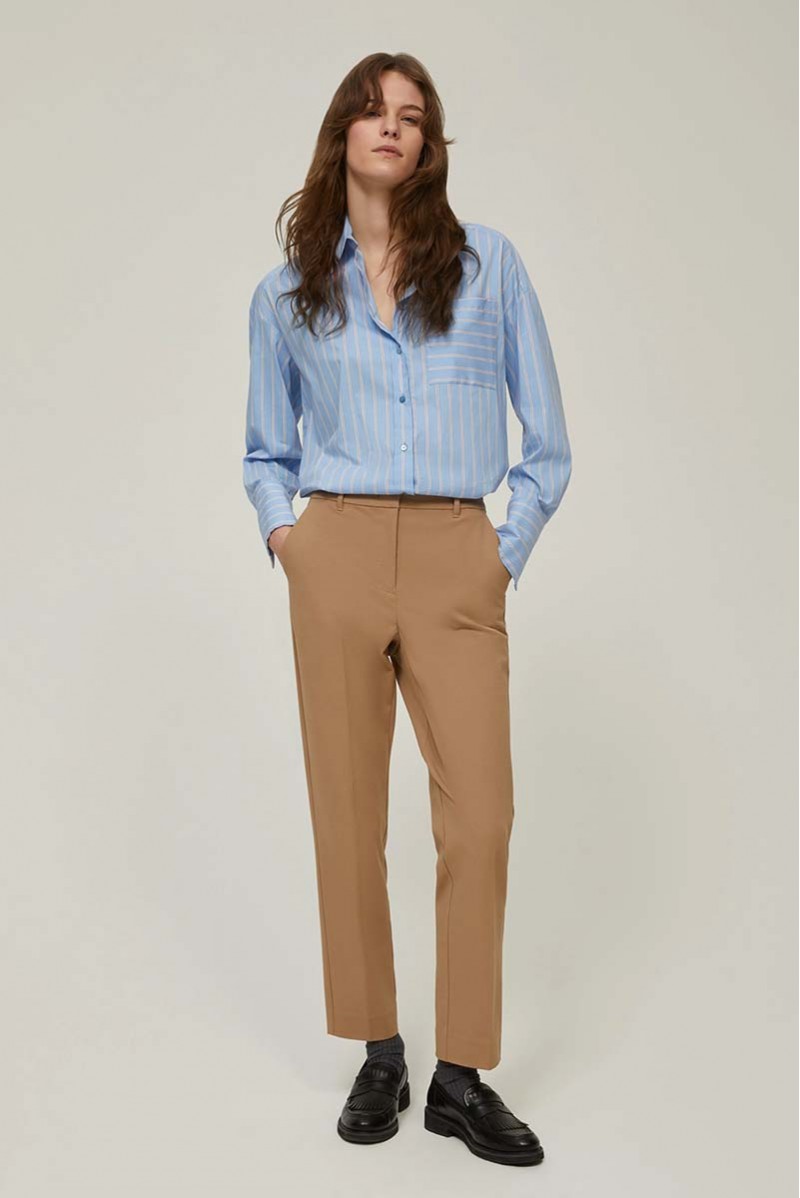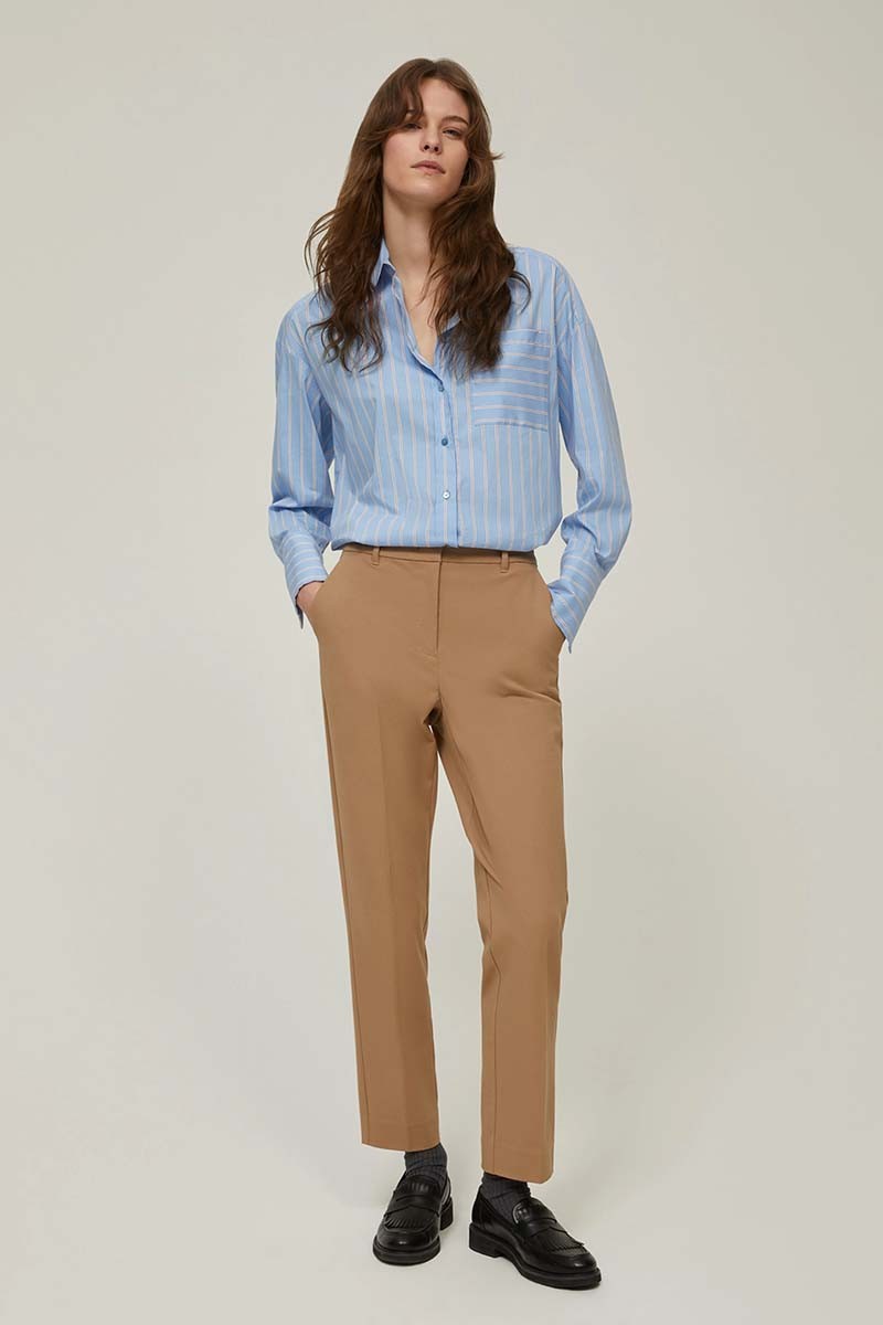 Pantalone Pennyblack modello chinos realizzato in cotone bi-stretch, un tessuto confortevole e traspirante che garantisce libertà di movimento e una vestibilità regolare.
