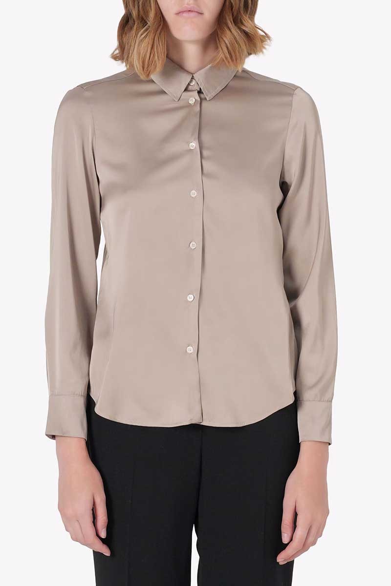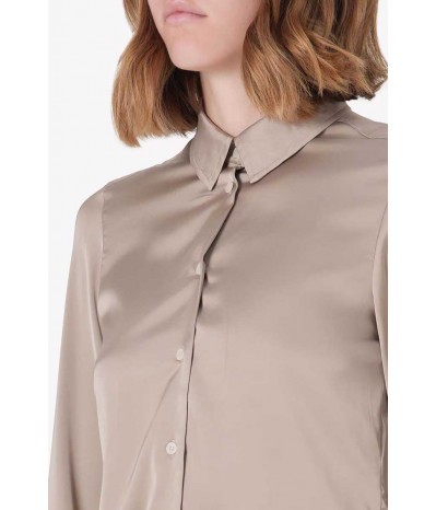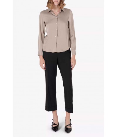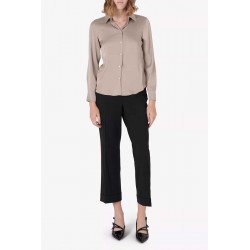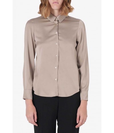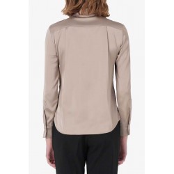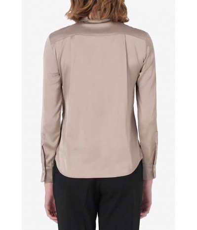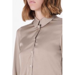 Camicia Emme Marella realizzata in raso leggero stretch, dal tocco setoso e luminoso, che garantisce eleganza e comfort. Il fit femminile leggermente sciancrato valorizza la silhouette, mantenendo una vestibilità armoniosa e sofisticata.Il modello presenta collo a camicia classico e chiusura frontale con bottoni a vista, mentre le maniche lunghe con bottone al polso e il carré posteriore con doppia pince completano il design con dettagli sartoriali.