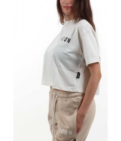 T-shirt Icon realizzata in morbido cotone, dal design giovane e contemporaneo. Il modello presenta un girocollo classico e maniche corte, mentre la linea cropped aggiunge un tocco moderno e femminile, perfetto per valorizzare outfit casual e urban.Il logo frontale in evidenza completa il design con un dettaglio distintivo e iconico.