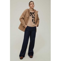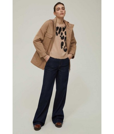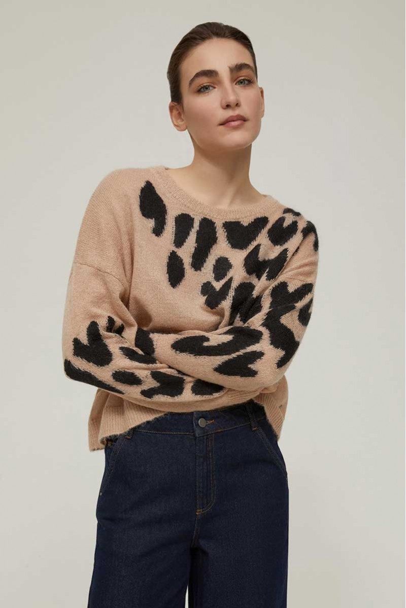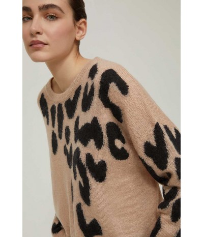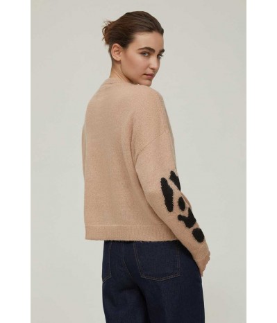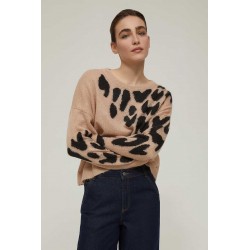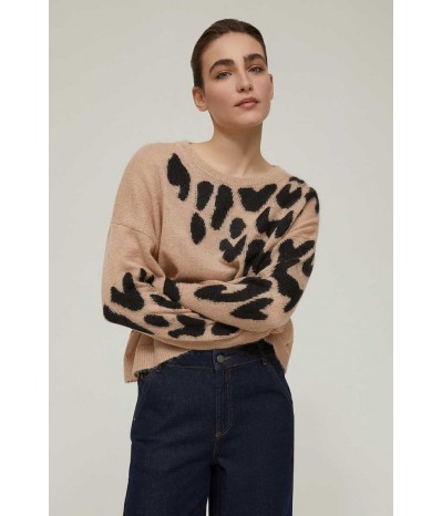 Maglia Pennyblack realizzata in filato misto mohair, leggero ma avvolgente, ideale per affrontare la stagione con comfort e stile.La lavorazione rasata a intarsio jacquard dona al capo un aspetto ricercato e distintivo, capace di aggiungere un tocco di personalità e colore agli outfit quotidiani.Il design a linee ampie e diritte, con girocollo, spalle scese e maniche lunghe, offre una vestibilità rilassata e contemporanea, mentre i bordi a coste rifiniscono il capo con cura sartoriale.