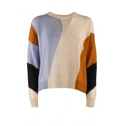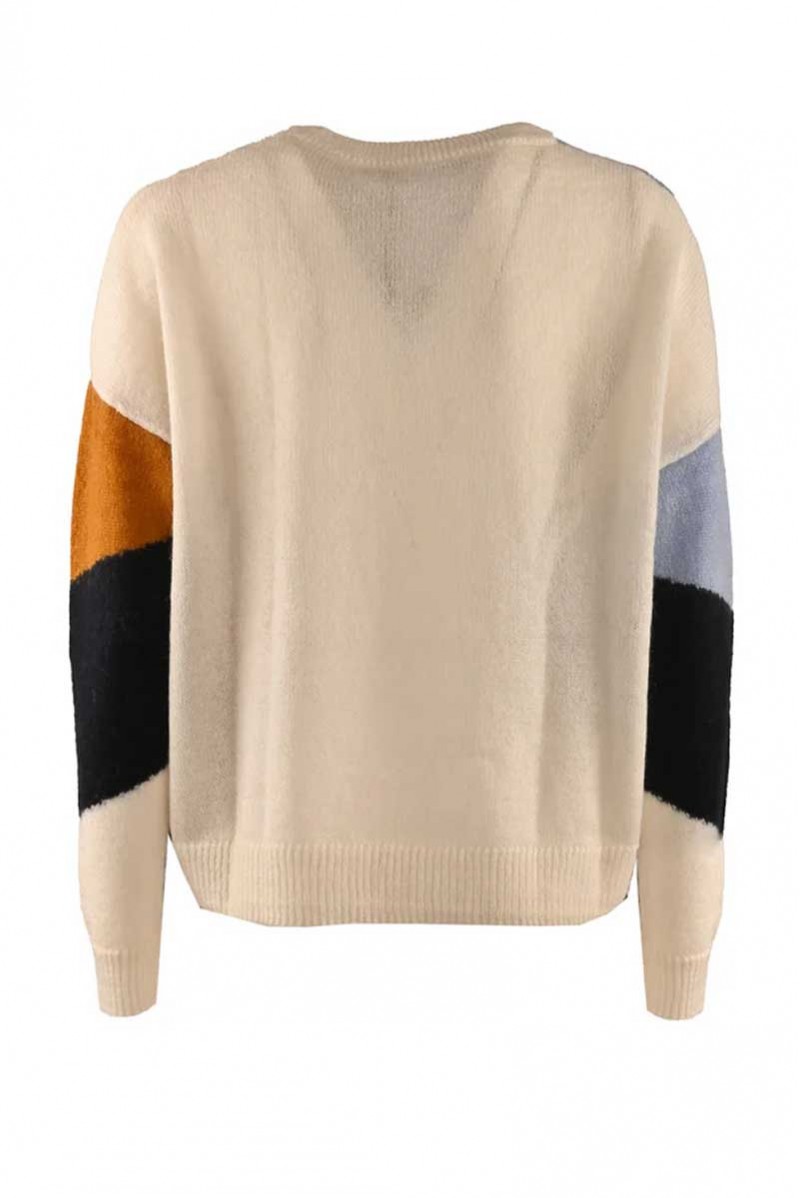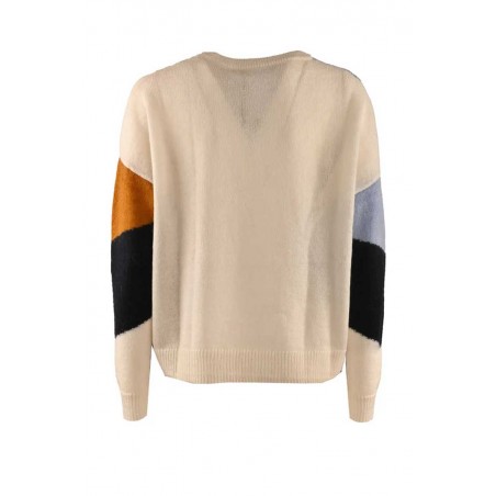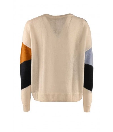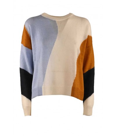 Maglia Pennyblack realizzata in filato misto mohair, leggero ma avvolgente, ideale per affrontare la stagione con comfort e stile.La lavorazione rasata a intarsio jacquard dona al capo un aspetto ricercato e distintivo, capace di aggiungere un tocco di personalità e colore agli outfit quotidiani.Il design a linee ampie e diritte, con girocollo, spalle scese e maniche lunghe, offre una vestibilità rilassata e contemporanea, mentre i bordi a coste rifiniscono il capo con cura sartoriale.