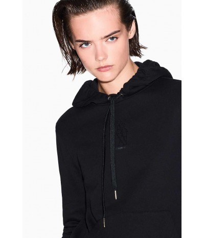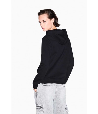 Felpa Armani Exchange realizzata in morbido cotone garzato, che assicura calore e comfort mantenendo uno stile contemporaneo. Il modello presenta un pratico cappuccio con coulisse regolabile e una comoda tasca a marsupio frontale, pensata per un utilizzo quotidiano.Il design è impreziosito dal logo frontale decorato con strass, dettaglio luminoso che conferisce al capo un tocco femminile e glamour senza rinunciare alla praticità.