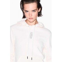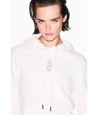 Felpa Armani Exchange realizzata in morbido cotone garzato, che assicura calore e comfort mantenendo uno stile contemporaneo. Il modello presenta un pratico cappuccio con coulisse regolabile e una comoda tasca a marsupio frontale, pensata per un utilizzo quotidiano.Il design è impreziosito dal logo frontale decorato con strass, dettaglio luminoso che conferisce al capo un tocco femminile e glamour senza rinunciare alla praticità.