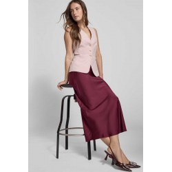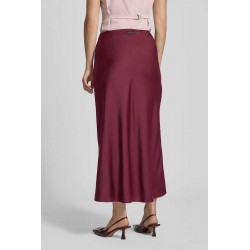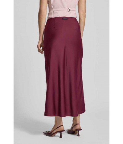 Gonna Armani Exchange realizzata in raso fluido, tessuto luminoso e sofisticato che valorizza il movimento e dona un tocco elegante. Il modello ha una lunghezza midi, femminile e versatile, ideale per outfit sia da giorno che da sera.La chiusura con zip laterale invisibile assicura una vestibilità impeccabile e una linea pulita.