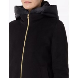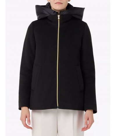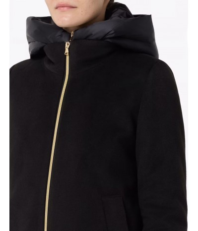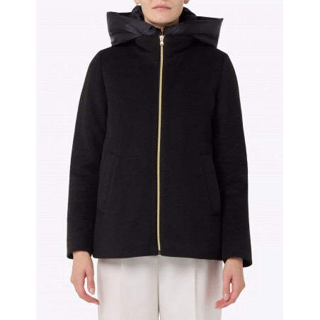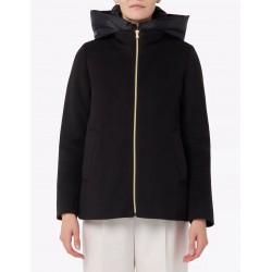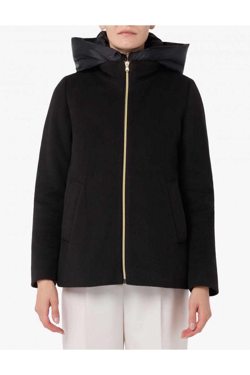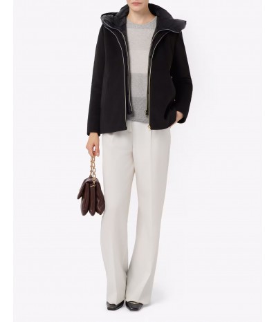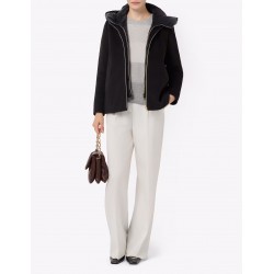 Giaccone Emme Marella dal design contemporaneo e confortevole, realizzato in panno soft imbottito per garantire calore e morbidezza durante la stagione fredda. Il fit dritto dona una linea pulita e moderna, mentre il collo con cappuccio e pettorina staccabili in tessuto luxury antigoccia assicura praticità e protezione dalle intemperie.La chiusura con full zip e le tasche laterali a filetto completano il capo con dettagli funzionali e curati. L’etichetta interna personalizzata “HUG ME” aggiunge un tocco distintivo e raffinato, tipico dello stile Emme Marella.
