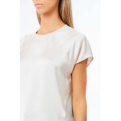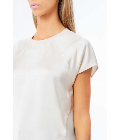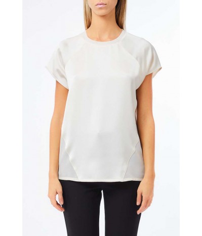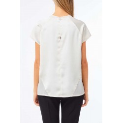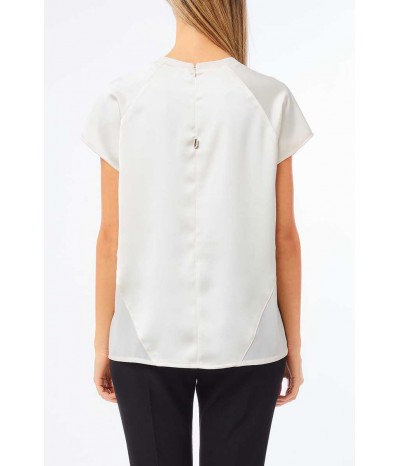 Blusa Liu Jo realizzata in bitessuto di raso e georgette, una combinazione raffinata che unisce luminosità e leggerezza per un effetto elegante e sofisticato. Il design essenziale è impreziosito dal contrasto materico che dona al capo movimento e ricercatezza.La chiusura con zip sul retro assicura praticità e una vestibilità impeccabile, mantenendo una linea pulita sul davanti.