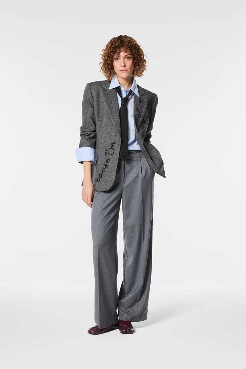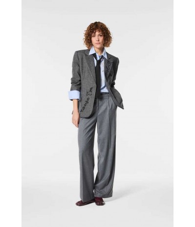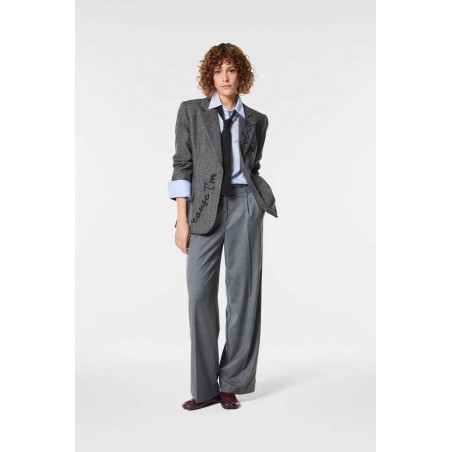 Pantalone Nenette modello palazzo, realizzato in misto lana, caldo e confortevole, ideale per la stagione fredda. Il design è caratterizzato da pences sul davanti che donano struttura e da eleganti tasche oblique, pratiche e funzionali.La vita alta slancia la silhouette ed è arricchita da una raffinata striscetta logata, dettaglio distintivo che valorizza il capo con discrezione.