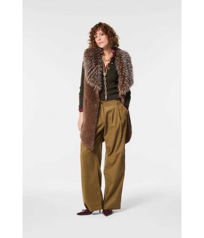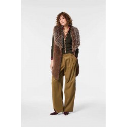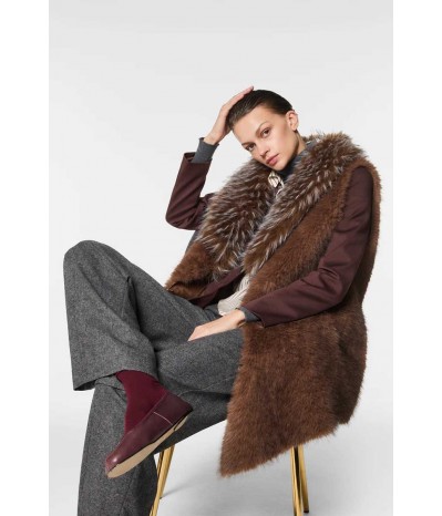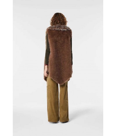 Gilet smanicato Nenette realizzato in morbida ecopelliccia, perfetto per aggiungere un tocco di eleganza e calore ai tuoi look. Il design è impreziosito da tasche nascoste, pratiche e discrete, e da una raffinata lunghezza asimmetrica, che dona movimento e modernità alla linea.