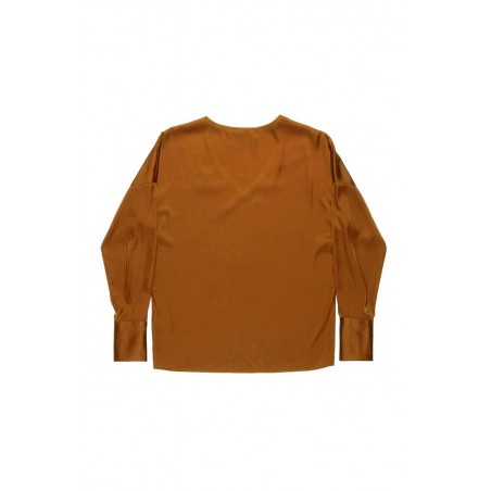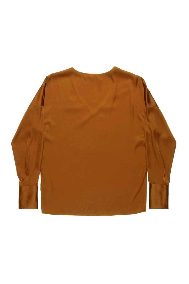 Blusa Nenette elegante e femminile, caratterizzata da un raffinato effetto seta che dona luminosità e morbidezza al tessuto. Il modello presenta un sensuale scollo a V che valorizza la scollatura e maniche lunghe che conferiscono un’eleganza senza tempo.