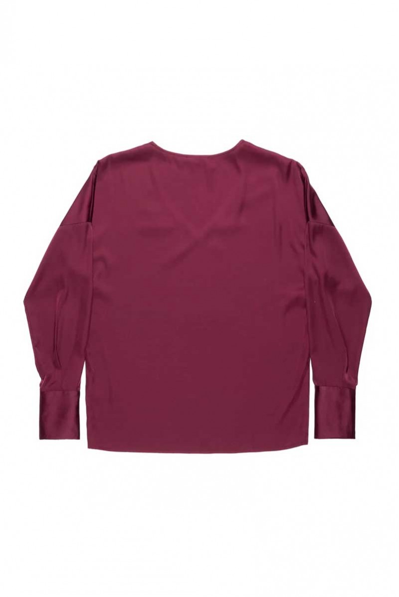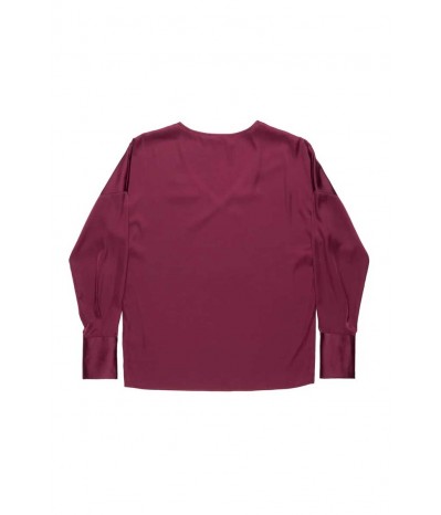 Blusa Nenette elegante e femminile, caratterizzata da un raffinato effetto seta che dona luminosità e morbidezza al tessuto. Il modello presenta un sensuale scollo a V che valorizza la scollatura e maniche lunghe che conferiscono un’eleganza senza tempo.