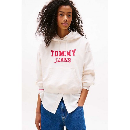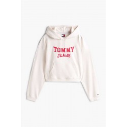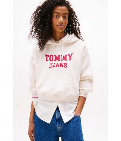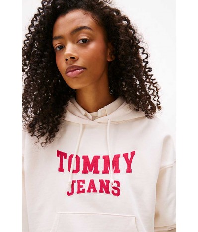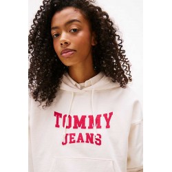 Felpa Tommy Jeans con cappuccio, realizzata in maglia di cotone estremamente confortevole. Il modello presenta una linea oversize fit con maniche lunghe e spalle abbassate, che assicurano libertà di movimento e un look moderno.La felpa è impreziosita da applicazioni che arricchiscono il design con un tocco distintivo. Il cappuccio con cordino garantisce protezione e calore extra, mentre la tasca a marsupio sul davanti offre praticità. I polsini e l’orlo a coste proteggono dal freddo e completano lo stile sportivo.Parte della linea sostenibile del brand, questo capo contiene fibre di cotone rigenerate.