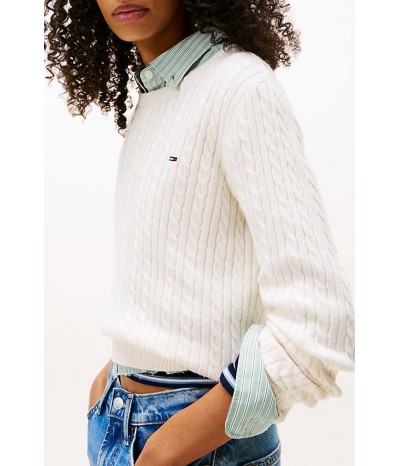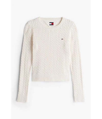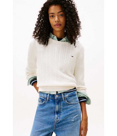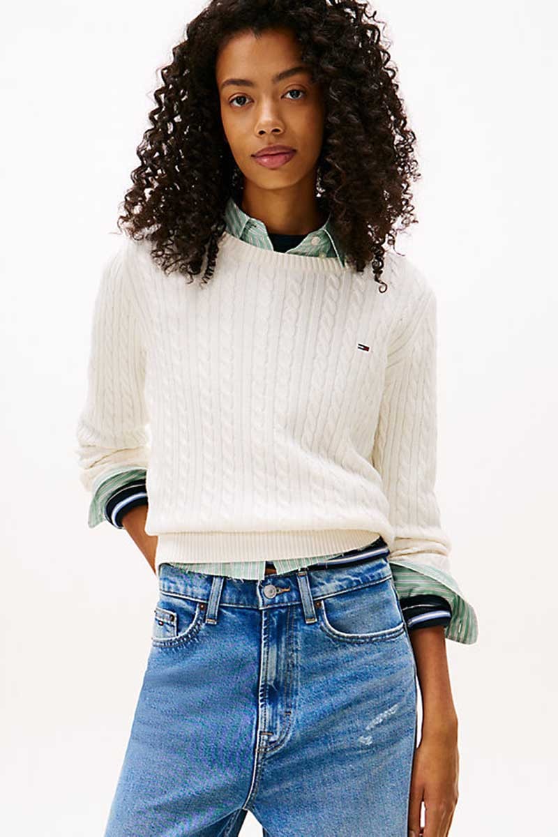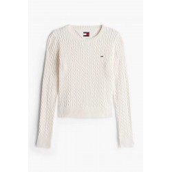 Maglia Tommy Jeans realizzata in 100% cotone, morbido e traspirante, ideale per un utilizzo quotidiano. Il modello presenta un classico girocollo e una vestibilità regular fit, che assicura comfort e libertà di movimento.Il design è arricchito dal raffinato motivo a trecce, che dona texture e un tocco sartoriale al capo, mentre il ricamo con bandiera iconica sul davanti sottolinea l’identità autentica del brand.