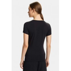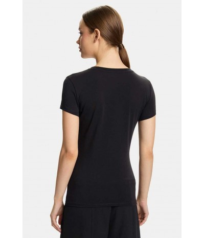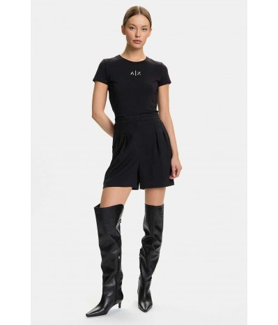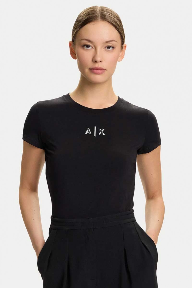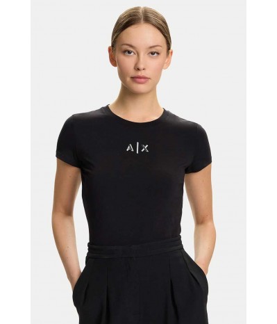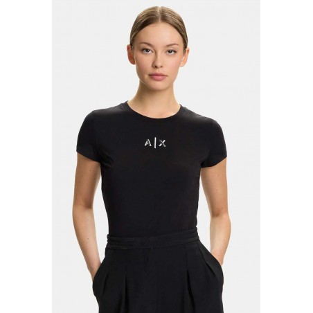 T-shirt Armani Exchange realizzata in morbido cotone stretch, che assicura comfort e una vestibilità aderente e valorizzante. Il modello presenta un elegante scollo a V, che dona femminilità e slancio alla figura.Il design è arricchito dal logo gommato applicato sul petto, dettaglio moderno e distintivo che sottolinea lo stile essenziale e contemporaneo del brand.