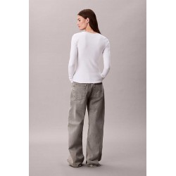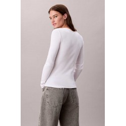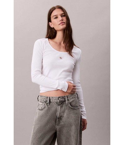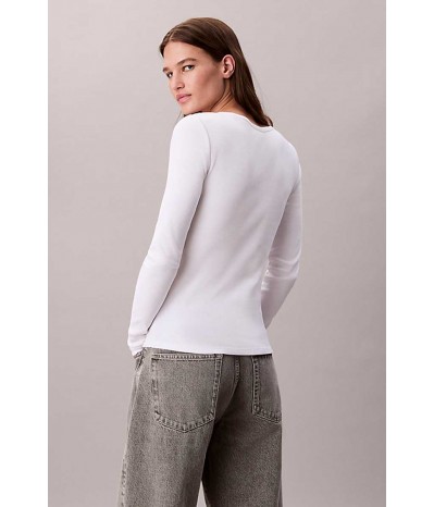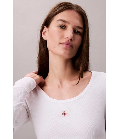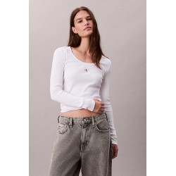 T-shirt Calvin Klein Jeans realizzata in morbido cotone a costine, che avvolge la silhouette con comfort e una vestibilità femminile. Il modello presenta un raffinato scollo a Madonna, che valorizza la linea del décolleté, e un taglio essenziale pensato per look moderni e versatili.Sul davanti spicca il piccolo logo centrale, discreto ma iconico, che firma il capo con l’inconfondibile stile Calvin Klein.