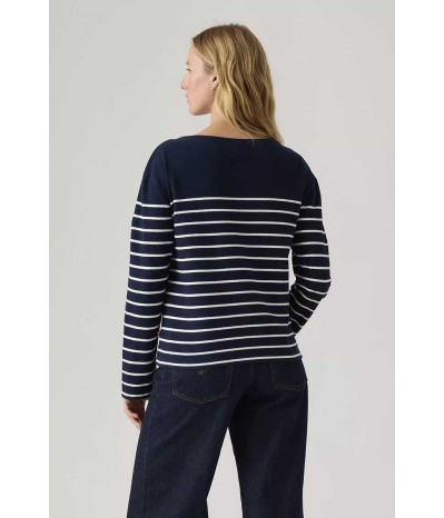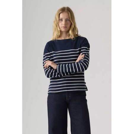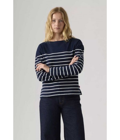 Maglia Levi’s realizzata in morbido cotone, caratterizzata da un elegante scollo a barca che valorizza la linea delle spalle. Il design è arricchito dal classico effetto a righe, per un look casual e senza tempo.Un capo versatile e confortevole, ideale per outfit quotidiani dal gusto autentico, perfetto da abbinare a denim o gonne per creare uno stile fresco e contemporaneo.