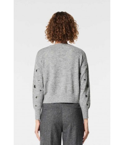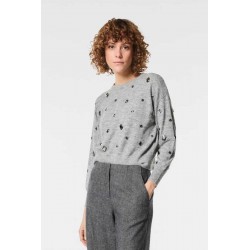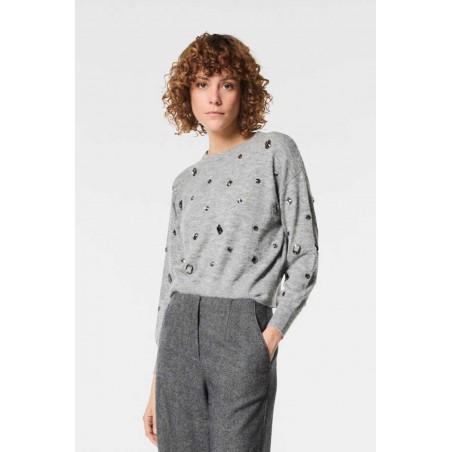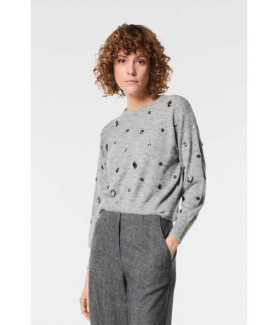 Maglia Nenette realizzata in misto lana, calda e confortevole, con un design che unisce eleganza e versatilità. Il modello presenta un classico girocollo e maniche rifinite con polsino, che assicurano una vestibilità curata.Il dettaglio distintivo è dato dalle pietre applicate, che impreziosiscono il capo con luminosità e un tocco glamour, rendendolo perfetto per occasioni in cui si desidera coniugare comfort e raffinatezza.
