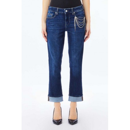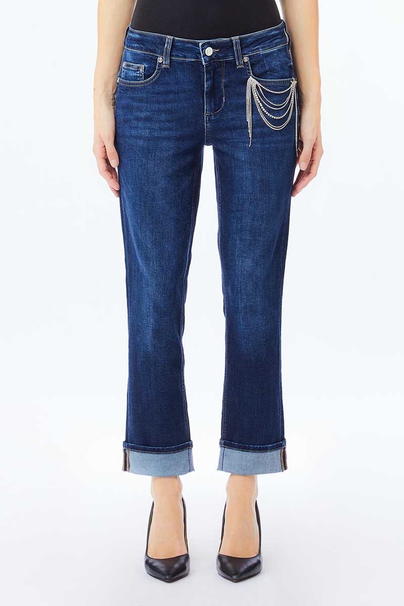 Jeans Liu Jo modello Monroe realizzati in denim elasticizzato, che assicura comfort, libertà di movimento e una vestibilità impeccabile. Il modello presenta una vita regolare (regular waist) e una linea versatile che valorizza la silhouette con naturalezza.Il design è arricchito dal risvolto sul fondo, dettaglio casual e contemporaneo che dona al capo un tocco giovane e di tendenza.