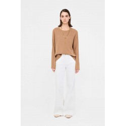 Maglia Liu Jo dallo stile contemporaneo, realizzata in misto lana e viscosa, morbida e confortevole. Il modello presenta un taglio over che garantisce comodità e movimento, arricchito da spacchetti laterali che donano leggerezza e femminilità alla linea.Il classico girocollo si unisce al dettaglio glamour del logo in strass applicato sul davanti, che illumina il capo con un tocco prezioso.