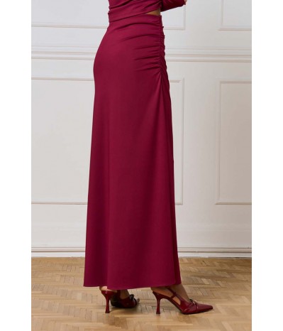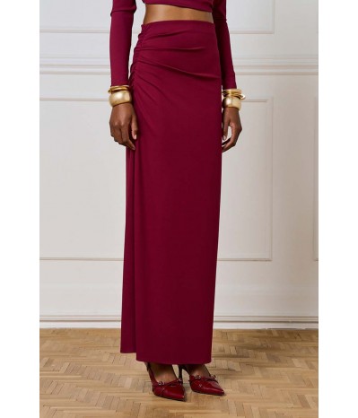 Gonna lunga Access realizzata in tessuto punto Milano, compatto ed elasticizzato, che garantisce comfort e una vestibilità perfetta. Il modello presenta una vita con elastico che assicura praticità e aderenza, mentre il drappeggio laterale dona movimento e un tocco raffinato alla linea.Il capo è completato da un sottogonna corto, che crea un elegante gioco di lunghezze e trasparenze mantenendo comfort e portabilità.