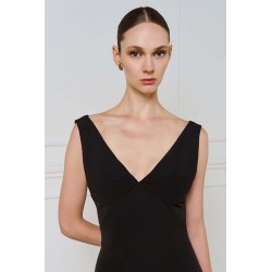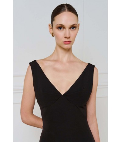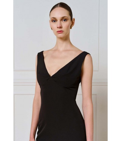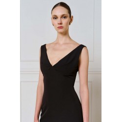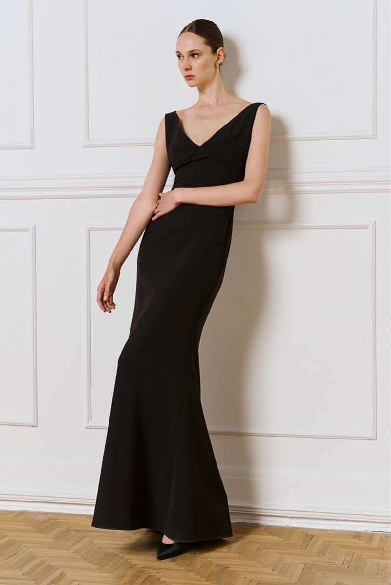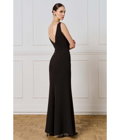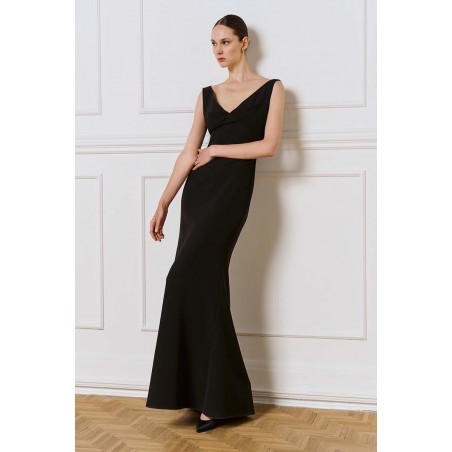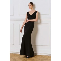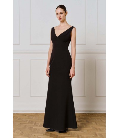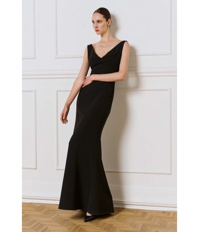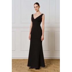 Abito lungo Access dal fascino essenziale e raffinato, caratterizzato da un elegante scollo a V che valorizza il décolleté. Il modello presenta una chiusura con zip sul retro che assicura una vestibilità impeccabile e una linea che si apre delicatamente sul fondo, creando un effetto svasato e fluido.