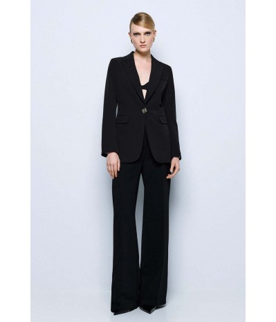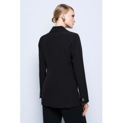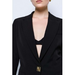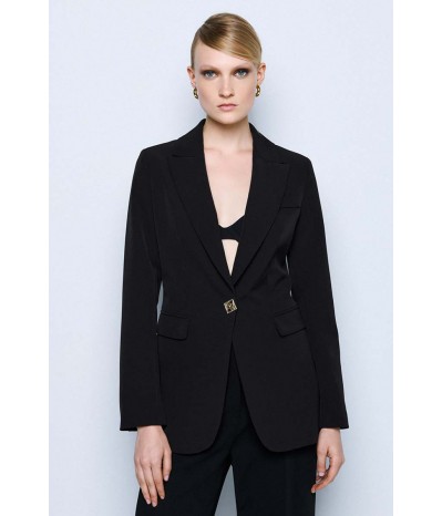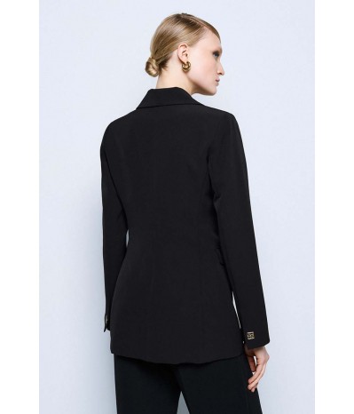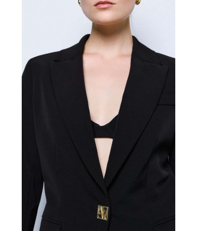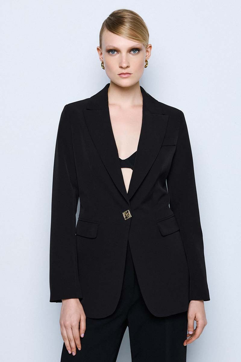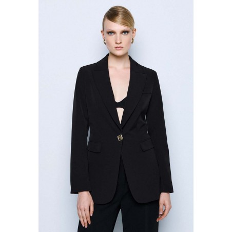 Blazer lungo Access dal taglio elegante e contemporaneo, perfetto per completare look formali e raffinati. Il modello presenta una chiusura monopetto con un bottone dorato, dettaglio prezioso che dona luminosità al capo, e pratiche tasche con pattine esterne, che aggiungono un tocco sartoriale.