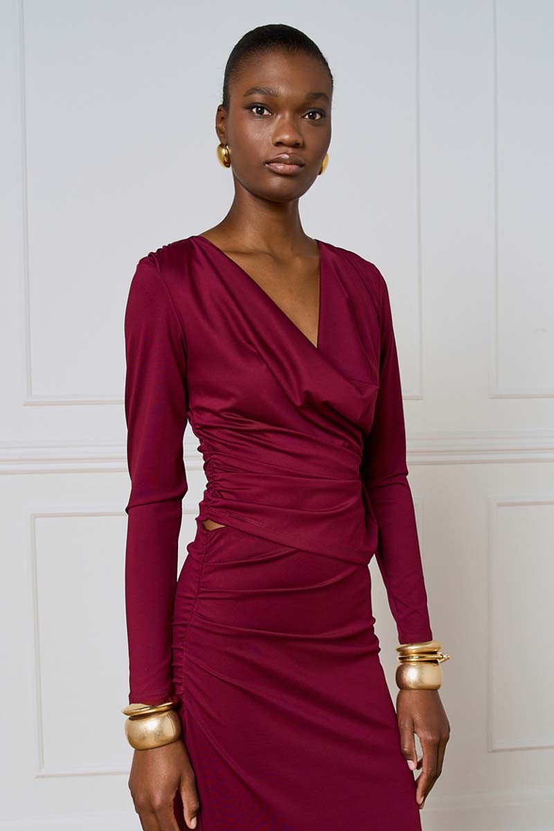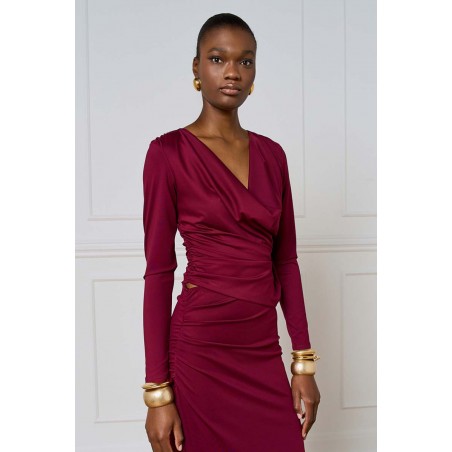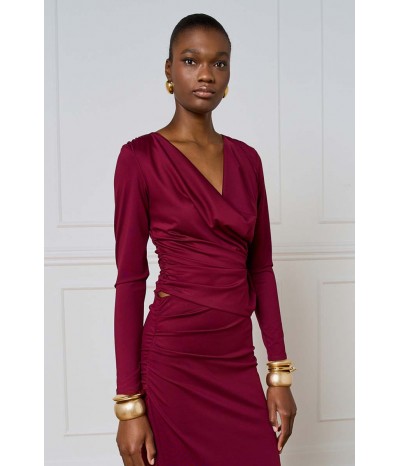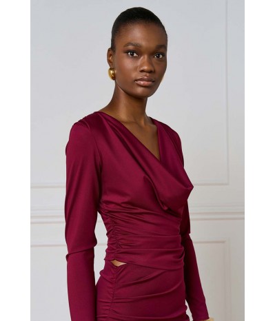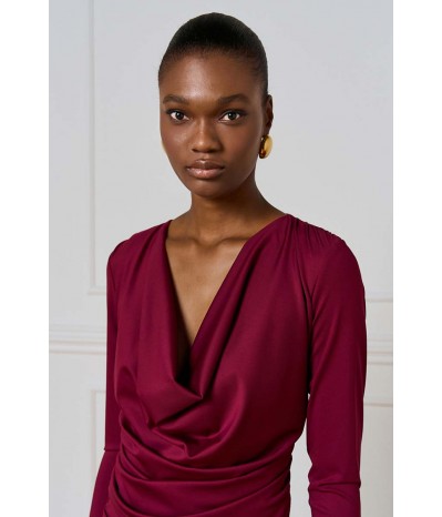 Blusa Access realizzata in jersey stretch, morbido ed elasticizzato, che assicura comfort e una vestibilità impeccabile. Il modello è impreziosito da un elegante bavero e da delicate arricciature sui fianchi e sulle spalle, che donano movimento e un tocco femminile al design.