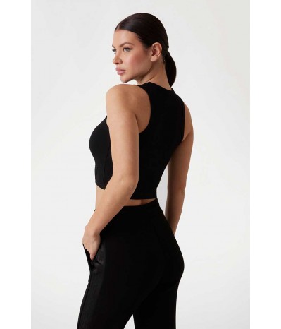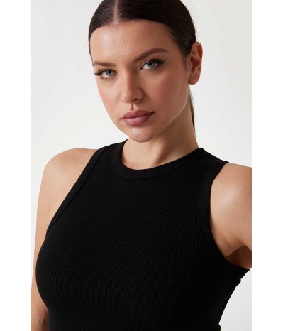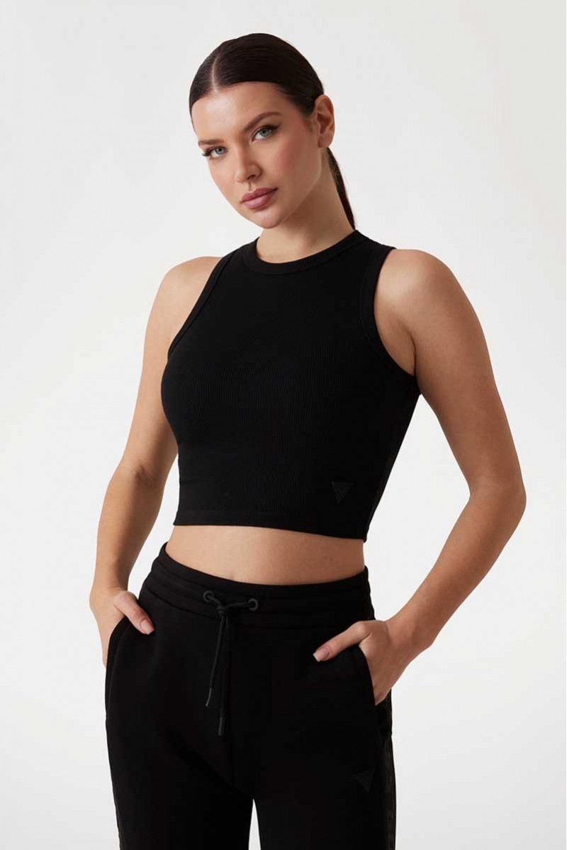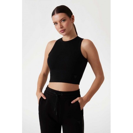 Top canotta Guess in cotone a costine, dal taglio aderente che valorizza la silhouette. Il logo distintivo aggiunge un tocco iconico al design essenziale.