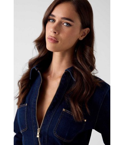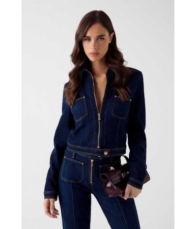 Giubbotto Guess realizzato in denim, con chiusura zip frontale pratica e funzionale. I taschini davanti aggiungono stile e comodità al design.