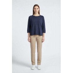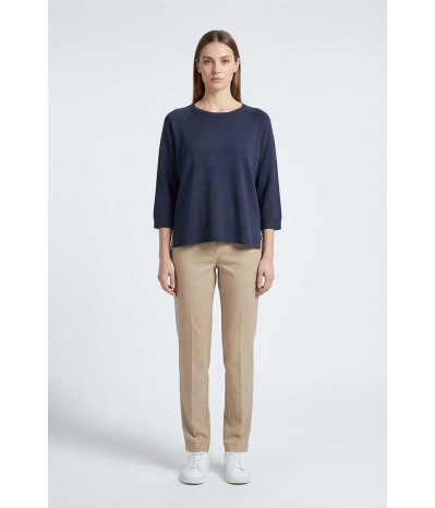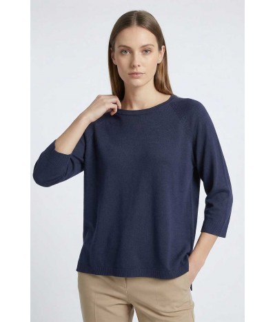Maglia Emme Marella girocollo con manica 3/4 in viscosa, modello scatoletta. Il design più corto sul davanti dona uno stile moderno e dinamico.