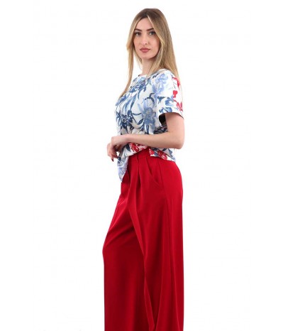 Blusa Emme Marella con scollatura a barca e manica corta in tessuto effetto seta stampato.