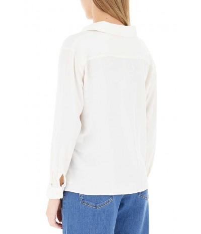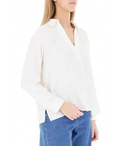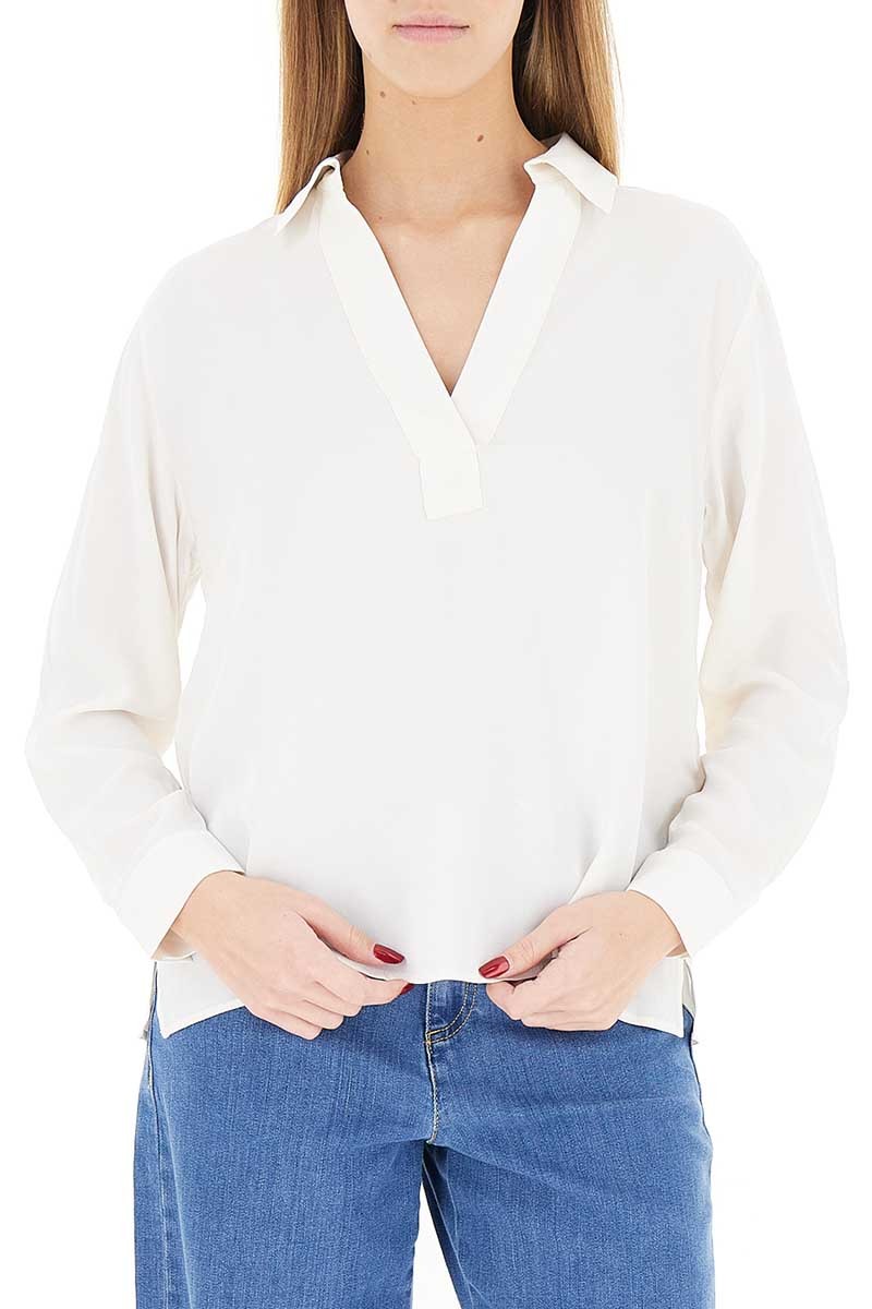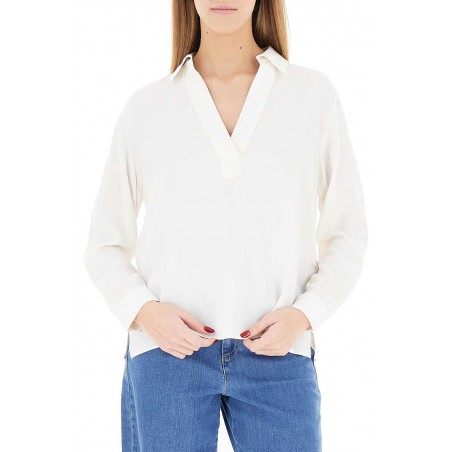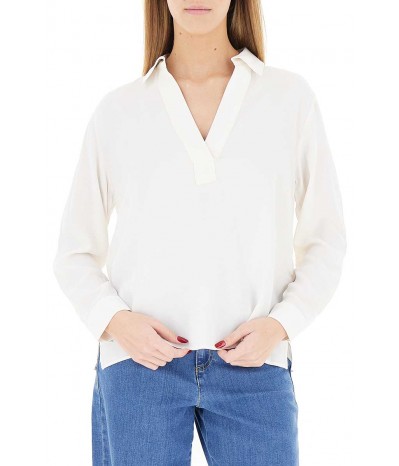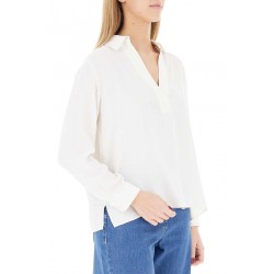 Blusa Emme Marella in misto seta con colletto e scollo a V, perfetta per un look elegante e femminile. Le maniche lunghe completano un capo raffinato e versatile.