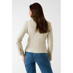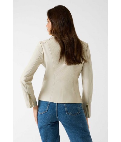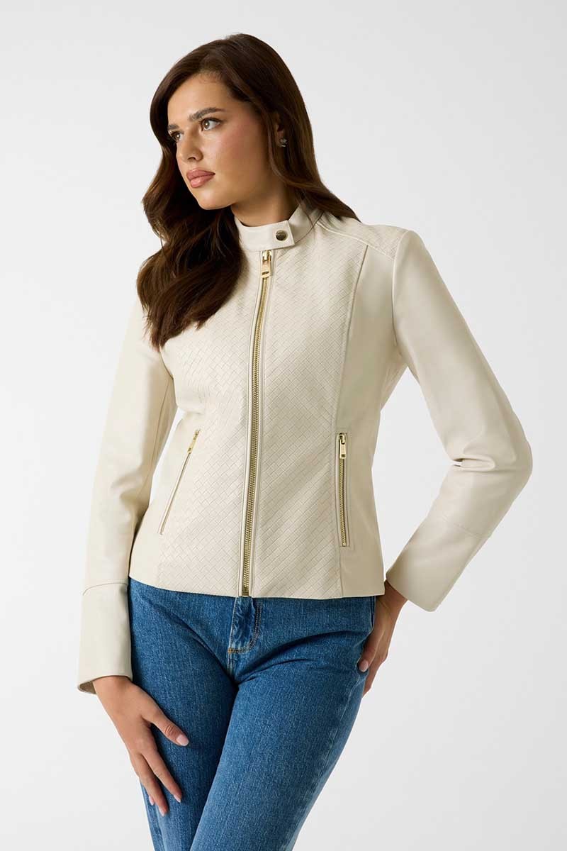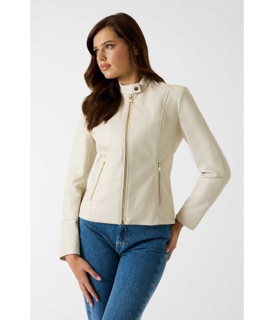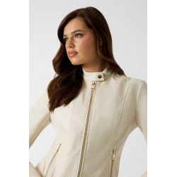 Giubbotto biker Guess da donna in ecopelle con dettaglio intreccio, dal modello sagomato e vestibilità regolare. La lavorazione intrecciata su fronte, retro e spalle dona carattere al design. Completo di chiusura full zip, due tasche laterali con zip e colletto alla coreana con bottone automatico.