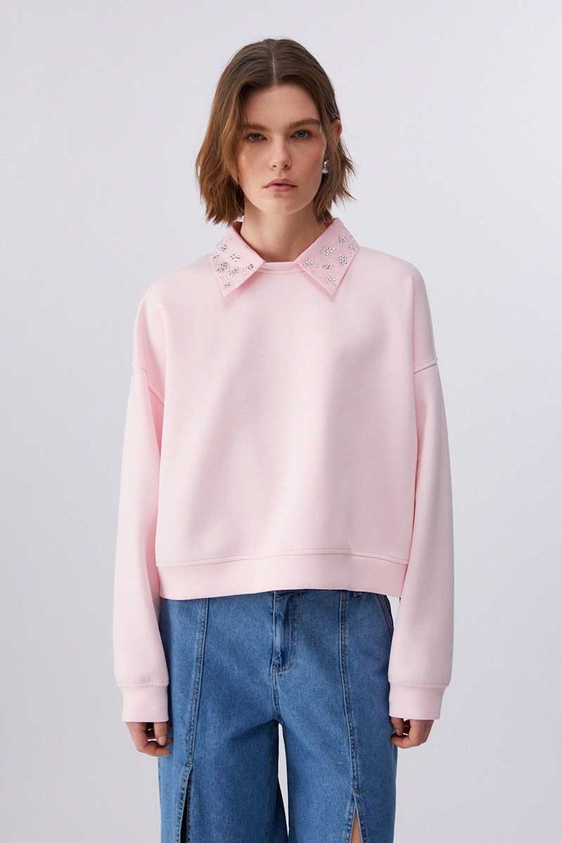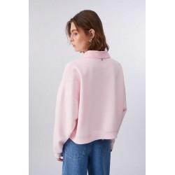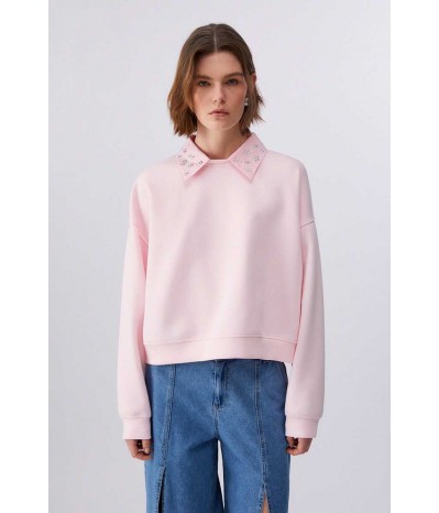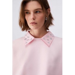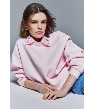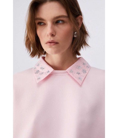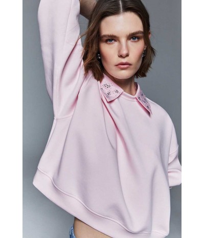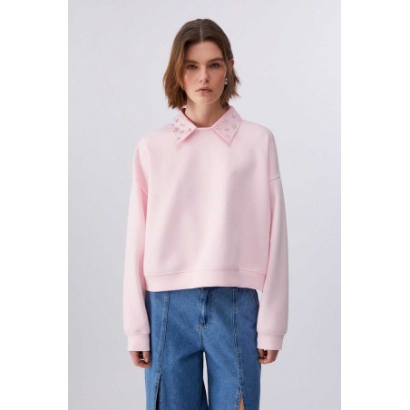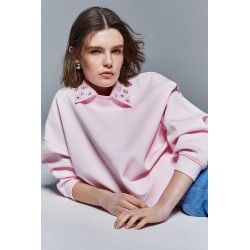 Felpa Liu Jo da donna in 100% cotone, dal comfort naturale e vestibilità regolare. Caratterizzata da maniche lunghe, colletto rimovibile e decorazione con strass che illumina il look.