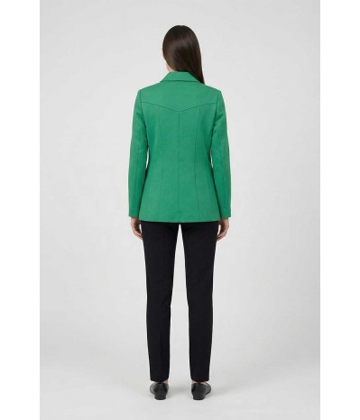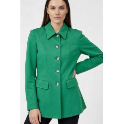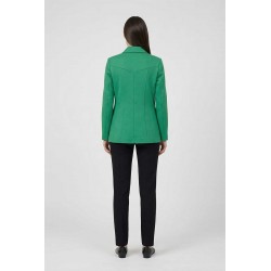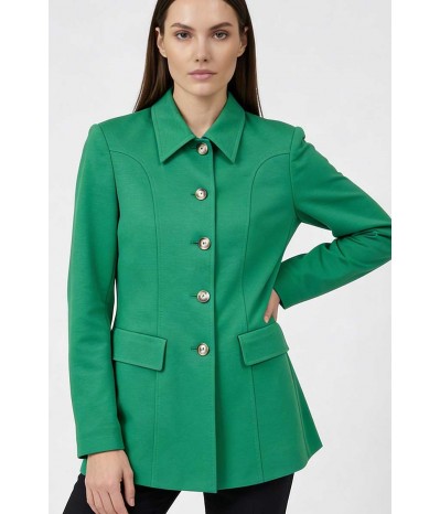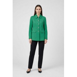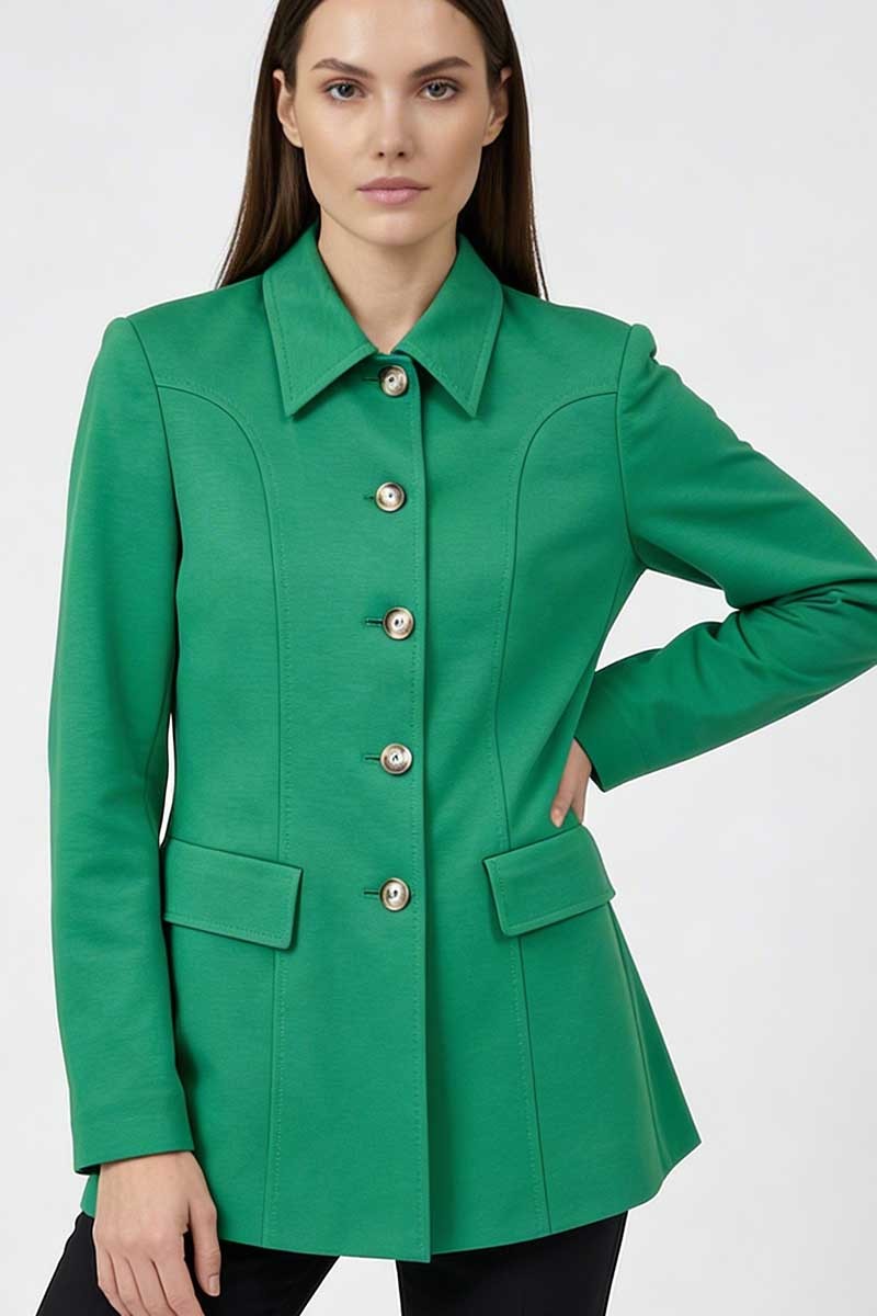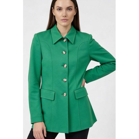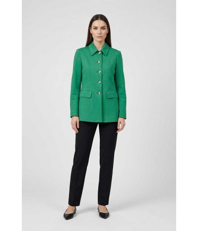 Giacca Diana Gallesi da donna con colletto classico e linea sagomata che valorizza la silhouette. Chiusura frontale con bottoni e tasche con pattina per un look elegante e pratico. Fodera manica fantasia che aggiunge un tocco distintivo.
