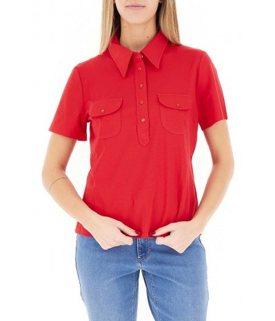 Polo Diana Gallesi a maniche corte in cotone elasticizzato. Modello con taschini frontali, ideale per un look casual e curato.
