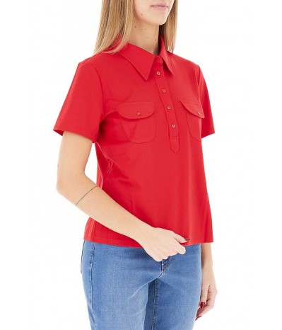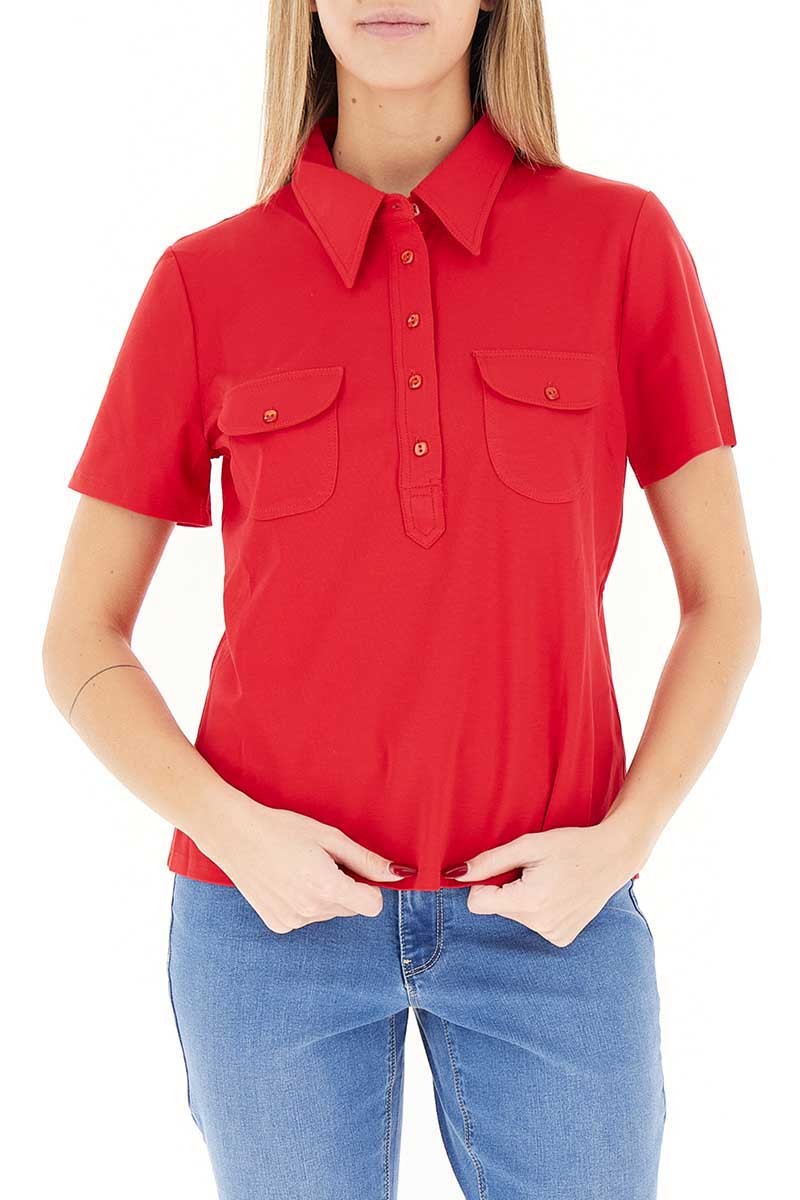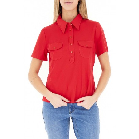 Polo Diana Gallesi a maniche corte in cotone elasticizzato. Modello con taschini frontali, ideale per un look casual e curato.