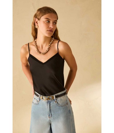 Top Pennyblack effetto seta con spalline sottili e scollatura a V, elegante e versatile.